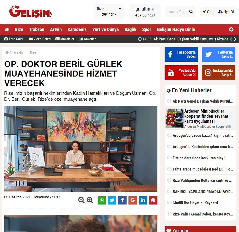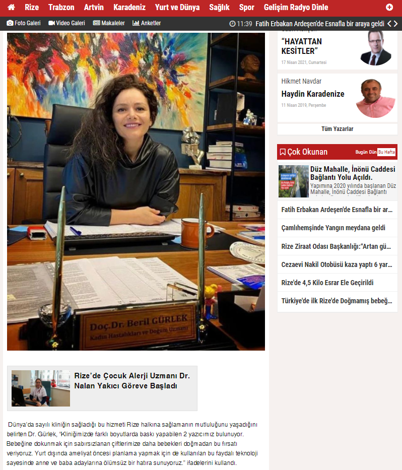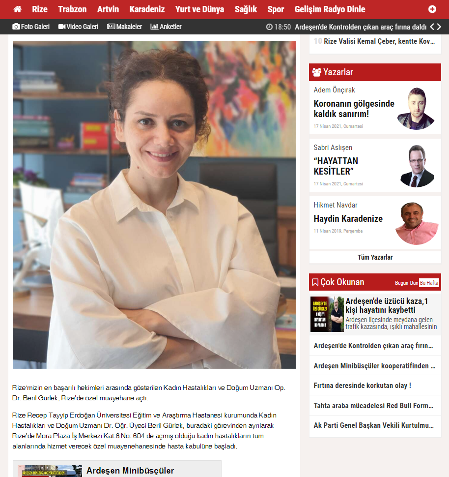 Basından Yayınlanan MakalelerimizEğitim Alanı 02/04/2021 Amenore (Adet Olamama)Ayrıntılı Bilgi 25/07/2021 Polip Nedir? Polip TedavisiAyrıntılı Bilgi 08/04/2021 Gebelikte Son 3 Aylık DönemAyrıntılı Bilgi 23/06/2021 Hamile Kalmadan Önce Yapılması GerekenlerAyrıntılı Bilgi 08/04/2021 Plasentanın GizemiAyrıntılı Bilgi 16/07/2021 Hormonlu Spiral Nedir?Ayrıntılı Bilgi 18/06/2021 Gebelik ve Sigara KullanımıAyrıntılı Bilgi 10/04/2021 Gebelikte EgzersizAyrıntılı Bilgi
